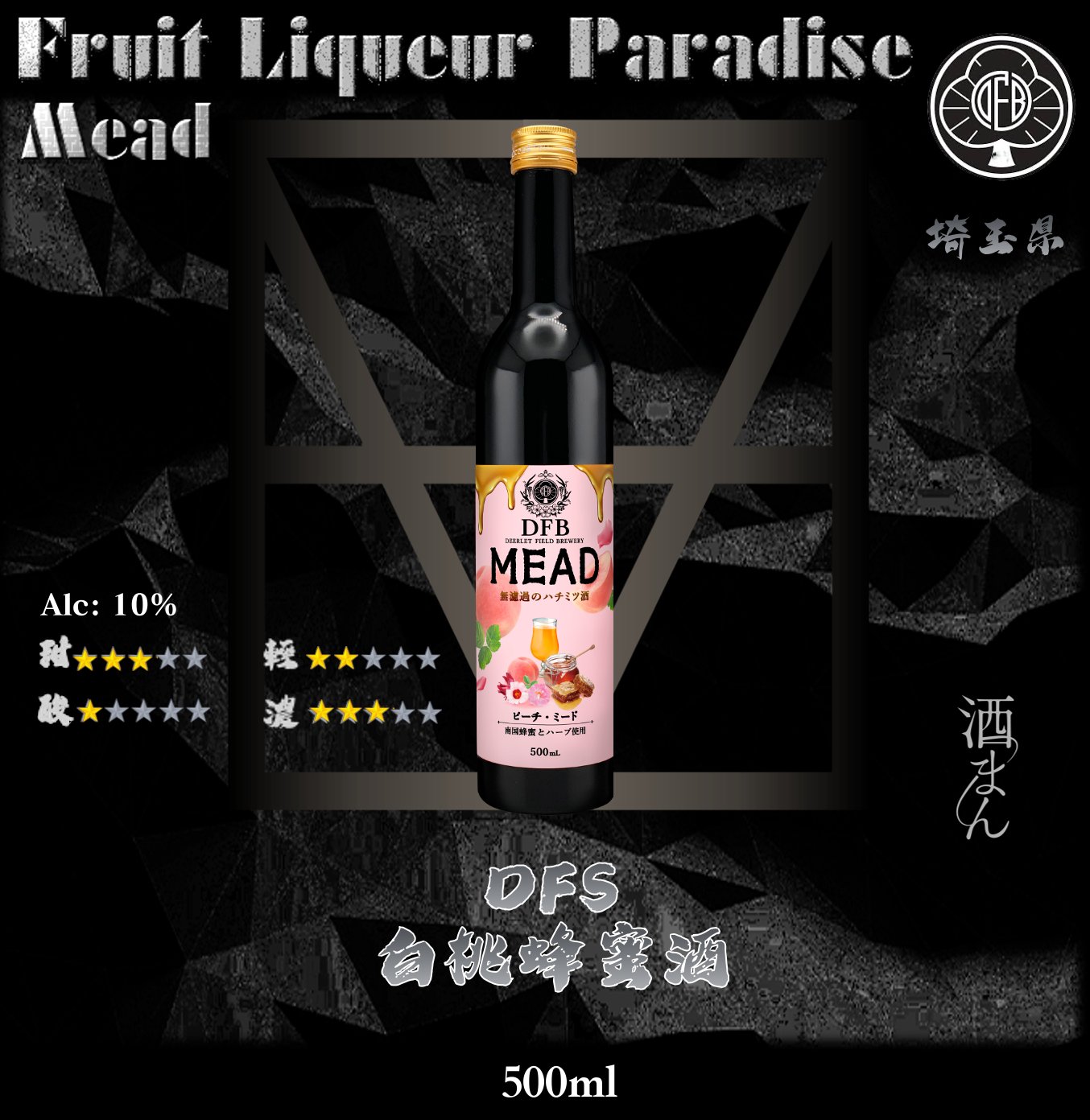 這款蜂蜜酒由白桃和 多様乾果發酵而成, 具有淡淡的桃子香氣和美味的水果味, 帶有溫和的甜味和酸味。